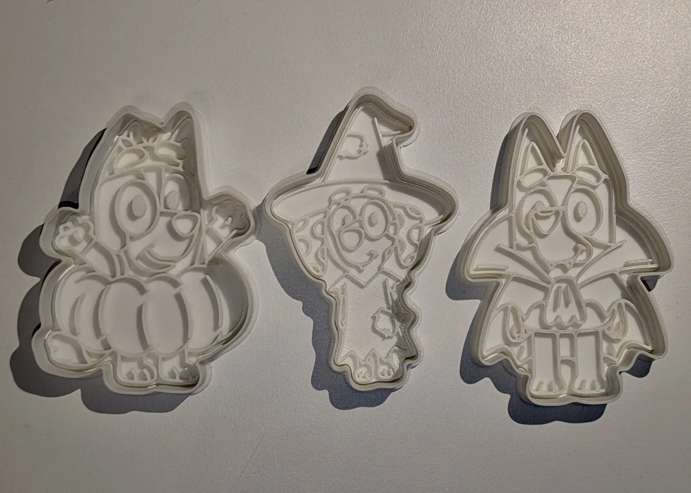 3D Tištěná Vykrajovátka – Bingo a Bluey Halloween Edice (inspirováno postavičkami)