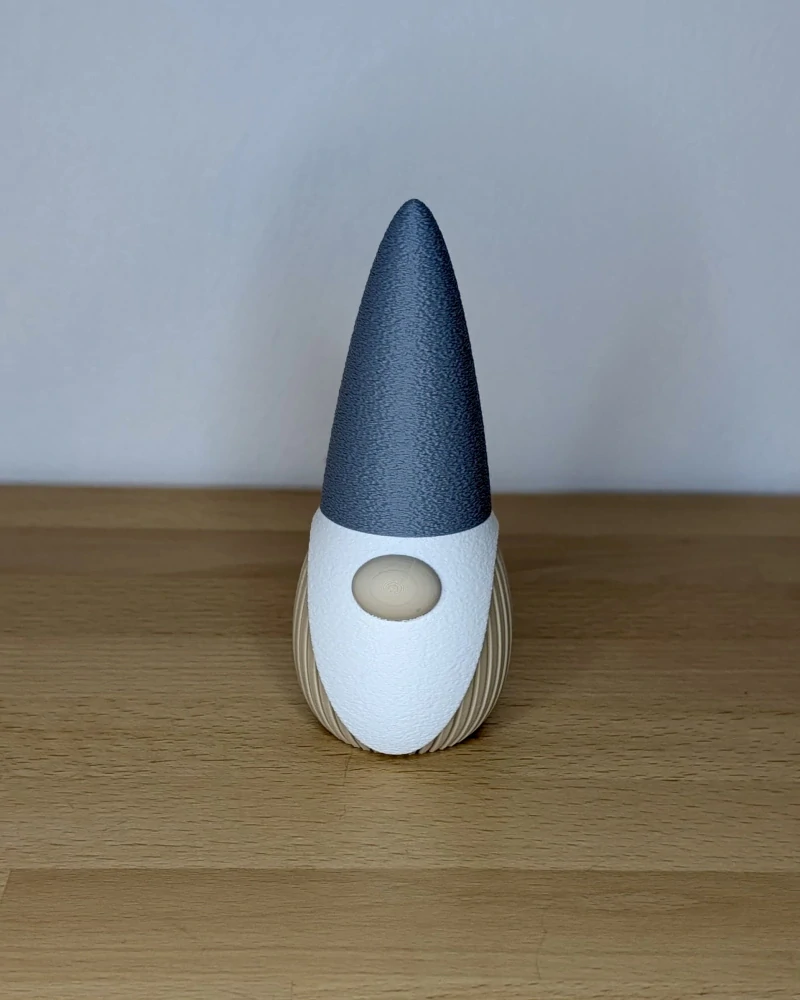 Originální 3D tištěný dekorativní skřítek, který se hodí jak do podzimní, tak i vánoční kolekce. Díky odnímatelné čepici je skřítek i praktickým boxem, kam můžete uložit drobnosti.