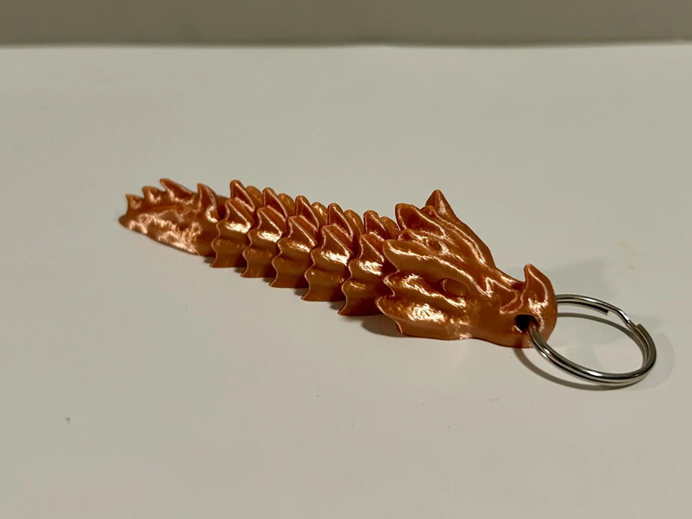 Oživte své klíče, batoh nebo kabelku tímto originálním 3D tištěným přívěskem ve tvaru draka! Díky pohyblivým článkům působí přívěsek dynamicky a hravě, což z něj dělá stylový a jedinečný doplněk pro milovníky fantasy a 3D tisku.