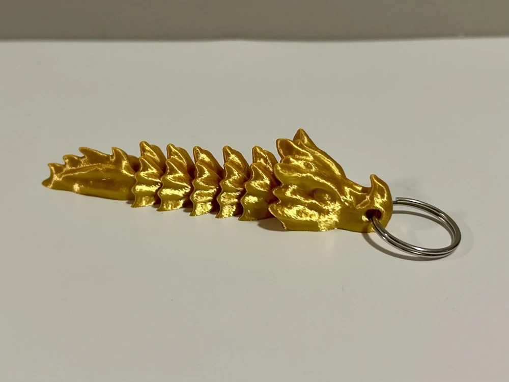Oživte své klíče, batoh nebo kabelku tímto originálním 3D tištěným přívěskem ve tvaru draka! Díky pohyblivým článkům působí přívěsek dynamicky a hravě, což z něj dělá stylový a jedinečný doplněk pro milovníky fantasy a 3D tisku.