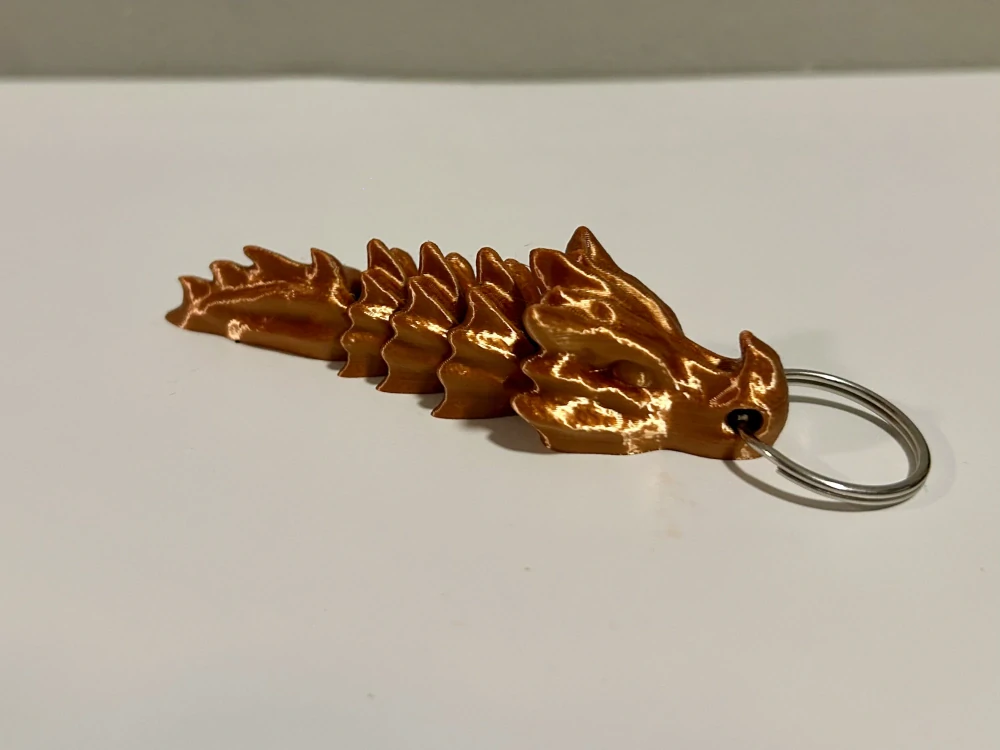 Oživte své klíče, batoh nebo kabelku tímto originálním 3D tištěným přívěskem ve tvaru draka! Díky pohyblivým článkům působí přívěsek dynamicky a hravě, což z něj dělá stylový a jedinečný doplněk pro milovníky fantasy a 3D tisku.