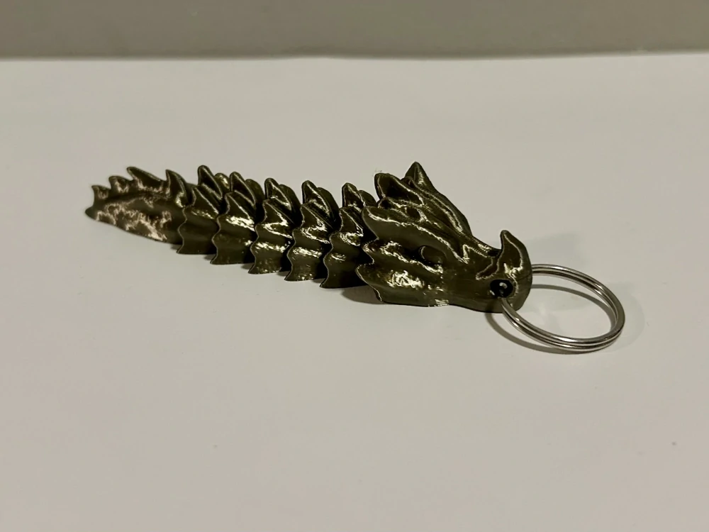 Oživte své klíče, batoh nebo kabelku tímto originálním 3D tištěným přívěskem ve tvaru draka! Díky pohyblivým článkům působí přívěsek dynamicky a hravě, což z něj dělá stylový a jedinečný doplněk pro milovníky fantasy a 3D tisku.