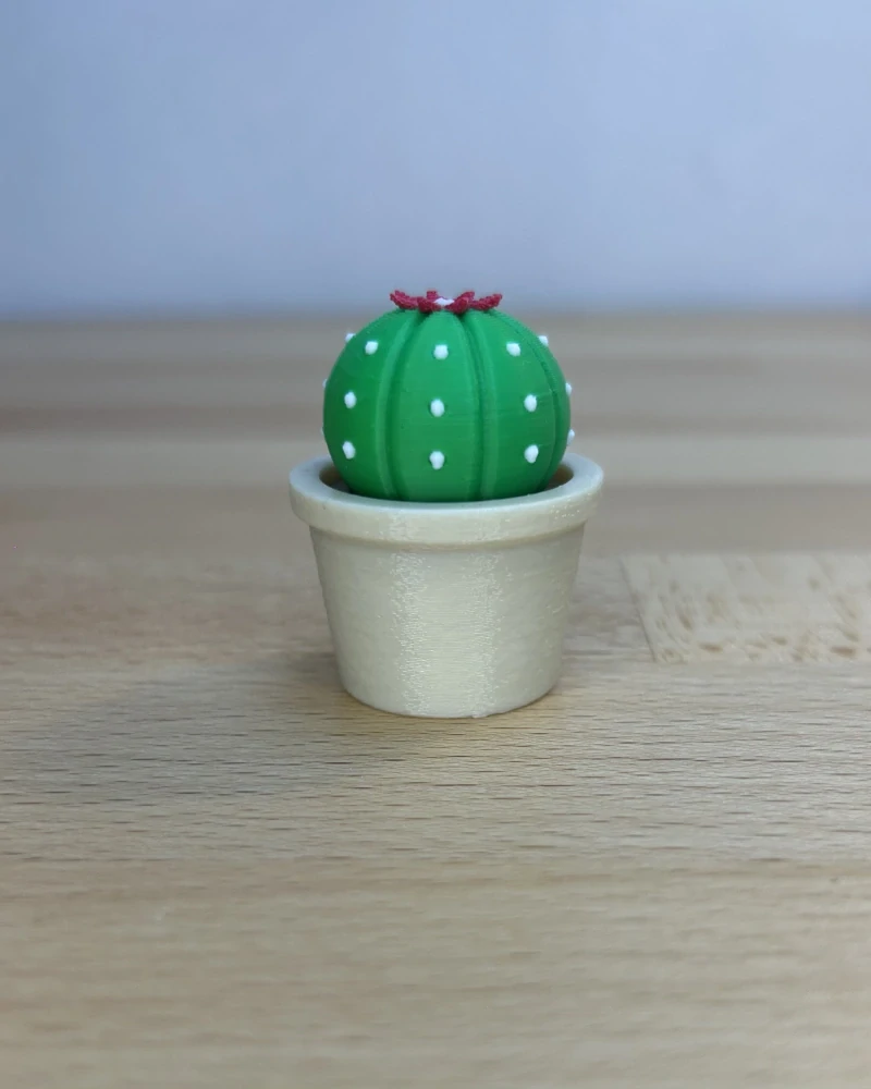 Kaktus je dostupný ve světlejším nebo tmavším odstínu zelené a lze jej kombinovat s různými barvami květináče. Každý kus je vyroben pomocí 3D tisku z PLA plastu.