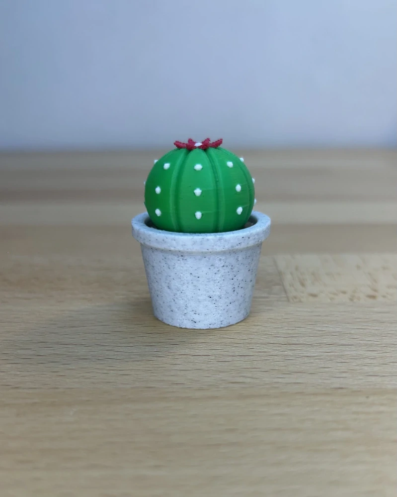 Kaktus je dostupný ve světlejším nebo tmavším odstínu zelené a lze jej kombinovat s různými barvami květináče. Každý kus je vyroben pomocí 3D tisku z PLA plastu.