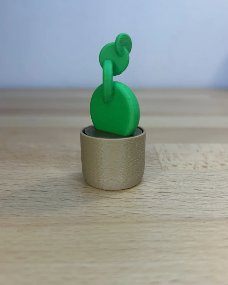 3D tištěný clicker ve tvaru opuncie s příjemným kliknutím při stisku. Malá antistresová pomůcka i stylový doplněk na pracovní stůl. Vybrat si můžete odstín zelené i barvu květináče. celý popis