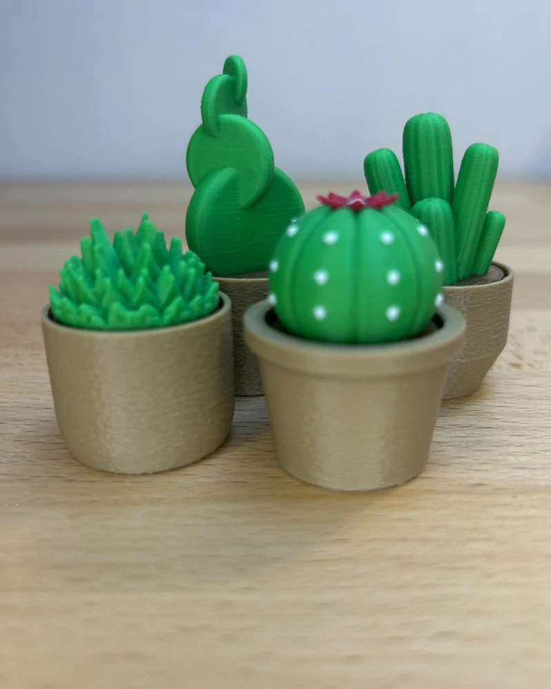 Výhodný set čtyř různých kaktusových clickerů obsahuje celou kolekci originálních 3D tištěných antistresových pomůcek. V sadě najdete špičatý, opuncii, kulatý a vysoký kaktus, každý s mechanickým kliknutím při stisku.