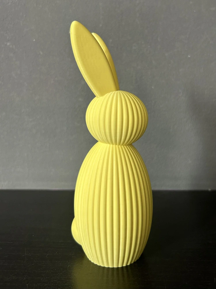 Zajíček je vyroben pomocí 3D tisku z kvalitního PLA materiálu. Každý kus je pečlivě vytištěn a ručně zkontrolován. Díky technologii 3D tisku se mohou na povrchu objevit jemné vrstvy typické pro tento způsob výroby, které podtrhují charakter a originalitu výrobku.