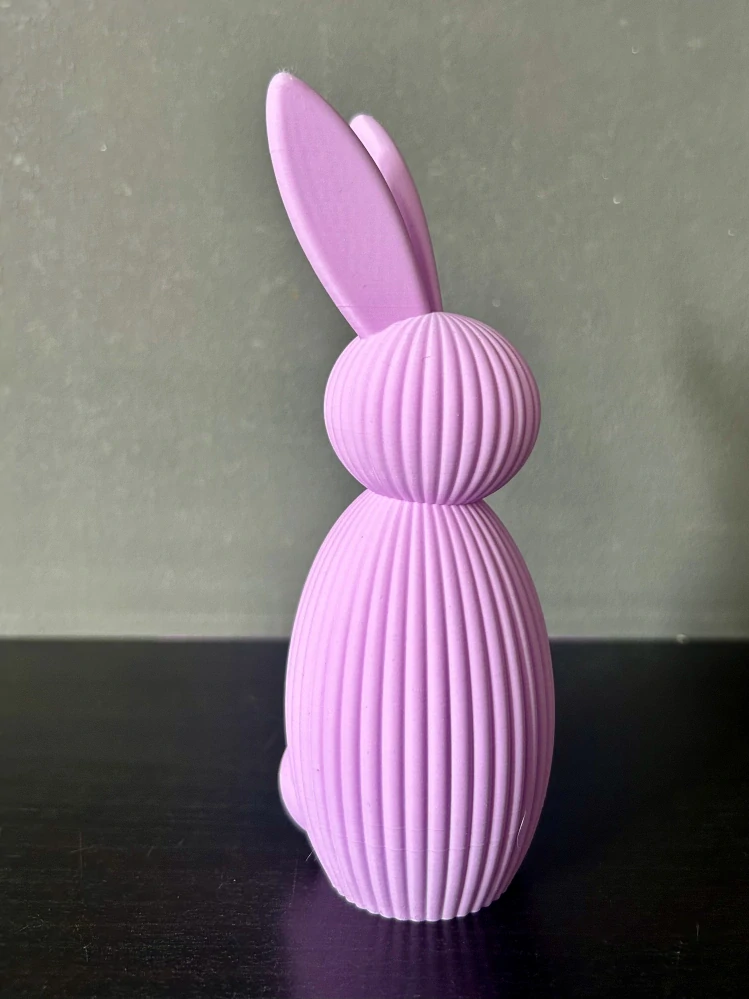 Zajíček je vyroben pomocí 3D tisku z kvalitního PLA materiálu. Každý kus je pečlivě vytištěn a ručně zkontrolován. Díky technologii 3D tisku se mohou na povrchu objevit jemné vrstvy typické pro tento způsob výroby, které podtrhují charakter a originalitu výrobku.