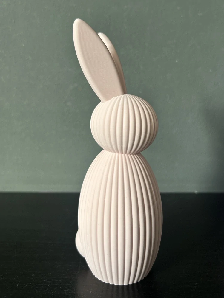 Zajíček je vyroben pomocí 3D tisku z kvalitního PLA materiálu. Každý kus je pečlivě vytištěn a ručně zkontrolován. Díky technologii 3D tisku se mohou na povrchu objevit jemné vrstvy typické pro tento způsob výroby, které podtrhují charakter a originalitu výrobku.