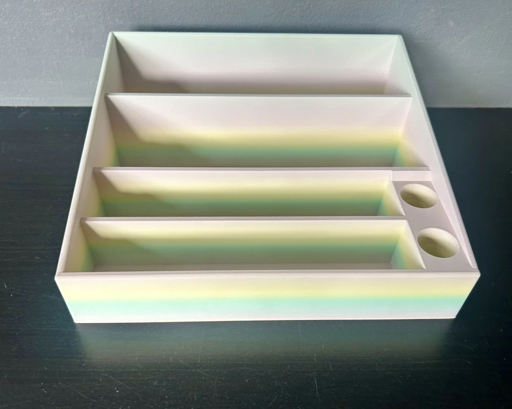 Tento kus je vyroben z duhového filamentu, díky kterému má každý výrobek jedinečný barevný přechod. Barevnost odpovídá fotografiím produktu, drobné rozdíly jsou přirozenou vlastností materiálu a procesu tisku.
