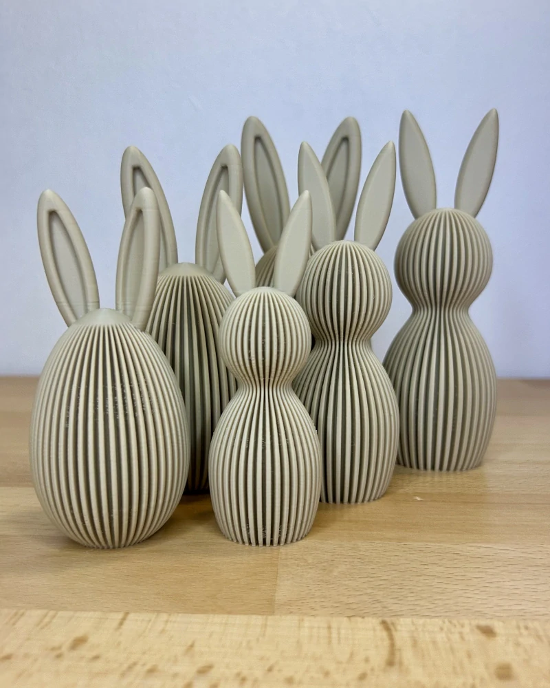 Stylová velikonoční dekorace ve tvaru zajíčka a vejce s oušky, inspirovaná estetikou Japandi – kombinací jednoduchosti, klidu a moderního designu. Jemné vertikální linie dodávají dekoraci elegantní vzhled, který vynikne v každém interiéru.