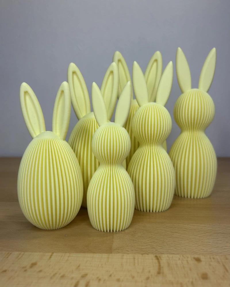 Stylová velikonoční dekorace ve tvaru zajíčka a vejce s oušky, inspirovaná estetikou Japandi – kombinací jednoduchosti, klidu a moderního designu. Jemné vertikální linie dodávají dekoraci elegantní vzhled, který vynikne v každém interiéru.