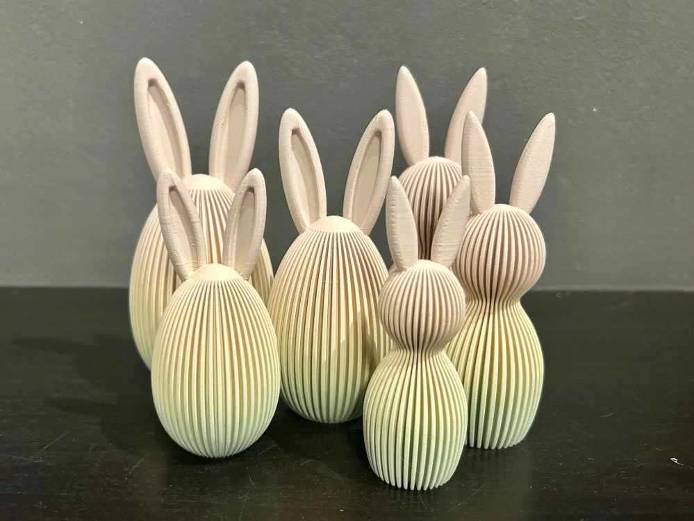 Stylová velikonoční dekorace ve tvaru zajíčka a vejce s oušky, inspirovaná estetikou Japandi – kombinací jednoduchosti, klidu a moderního designu. Jemné vertikální linie dodávají dekoraci elegantní vzhled, který vynikne v každém interiéru.