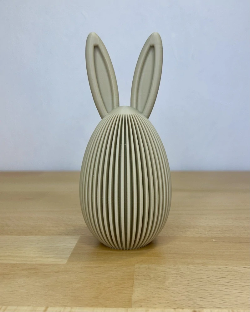 Stylová velikonoční dekorace ve tvaru vejce s oušky, inspirovaná estetikou Japandi – kombinací jednoduchosti, klidu a moderního designu. Jemné vertikální linie dodávají dekoraci elegantní vzhled, který vynikne v každém interiéru.