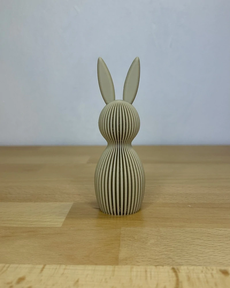 Velikonoční zajíček inspirovaný stylem japandi v sobě spojuje jednoduchost, harmonii a jemné detaily. Čisté linie a pravidelné žebrování vytváří elegantní dekoraci, která se hodí do moderních i přírodně laděných interiérů.